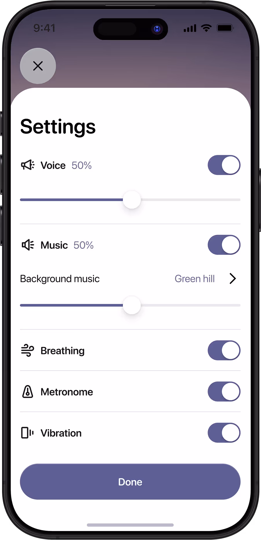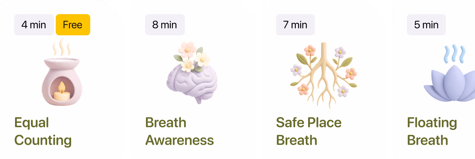 Every breath session is guided, timed, and supported with calming visuals and audio. Just press play — and start transforming your state.